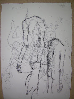 The last art thing that I did this last week was body monoprinting, where I inked up sheets of metal, set them on the floor, put paper over the top and made marks with my body. I rolled and crawled and scratched all over the top of it, got some strange stares and came out with some good work.